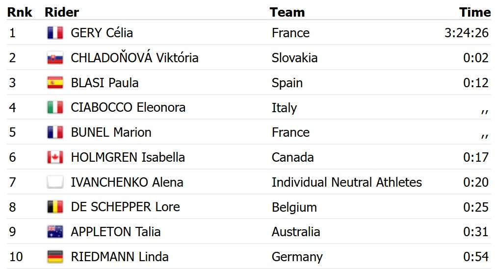 Победу одержала француженка Селия Жери. На финише она на 2 секунды опередила словачку Викторию Хладонову. Бронзу завоевала испанка Паула Бласи, которая выиграла спринт из группы преследователей, проигравшей 12 секунд.