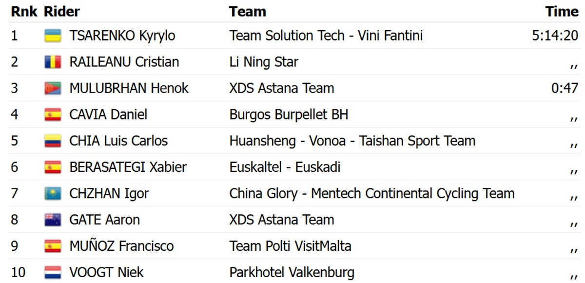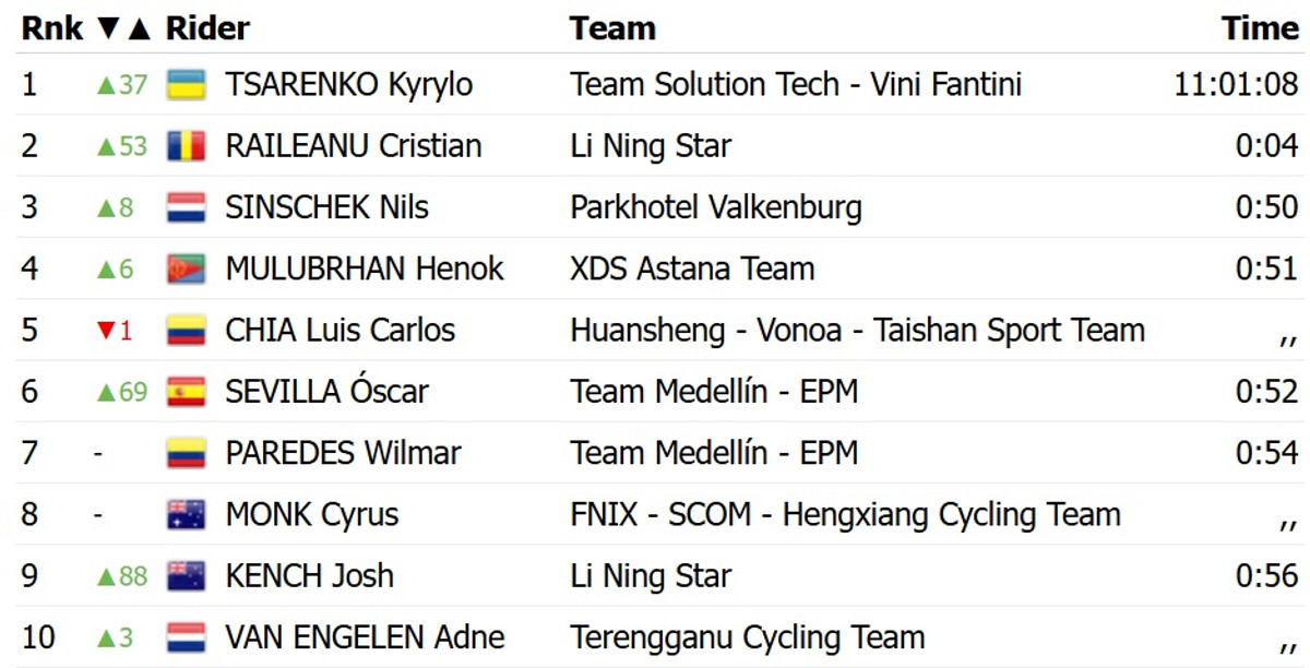 Этот успех позволил Царенко возглавить общий зачет многодневки за два этапа до финиша. Для 24-летнего украинца это первая в карьере победа на уровне Про серии (Проконтинентального тура) – второго по силе дивизиона шоссейного велоспорта.