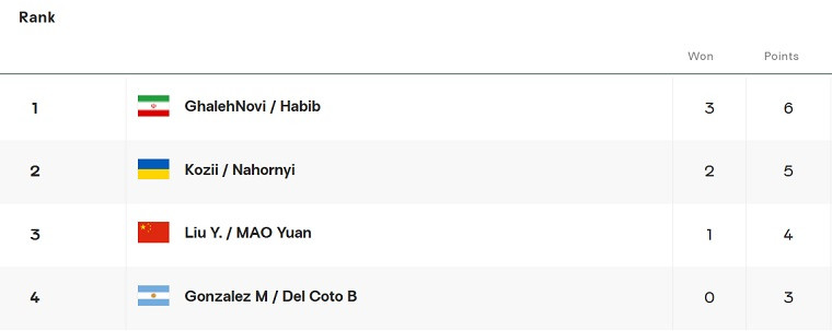 Спортсмены попали в группу D, где соперниками были пары из Ирана, Аргентины и Китая.