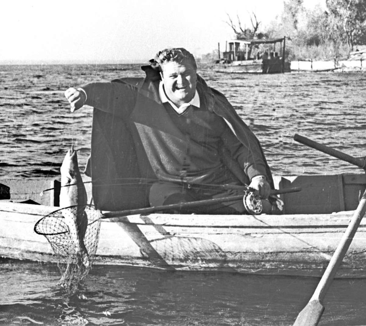 Однажды сделал из Леонида заядлого рыбака. По просьбе отца в рыбном совхозе как реквизит обеспечили щуку, крепко прицепили ее к крючку и вручили Жаботинскому вместе со спиннингом. Для большей достоверности папа попросил еще подсаку и плащ с капюшоном. Леонид уселся в лодку и с довольным лицом демонстрировал рыбину. Кадр обошел многие издания.