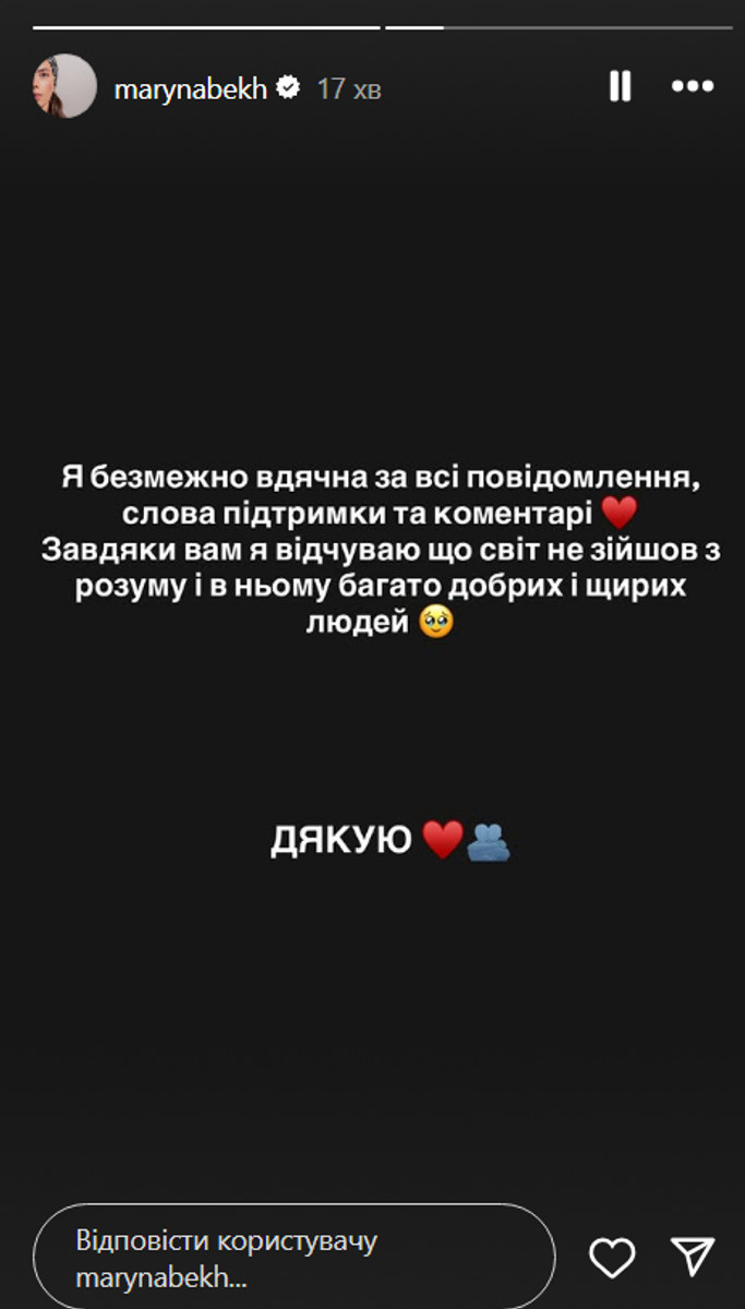 "Я безмежно вдячна за всі повідомлення, слова підтримки та коментарі.