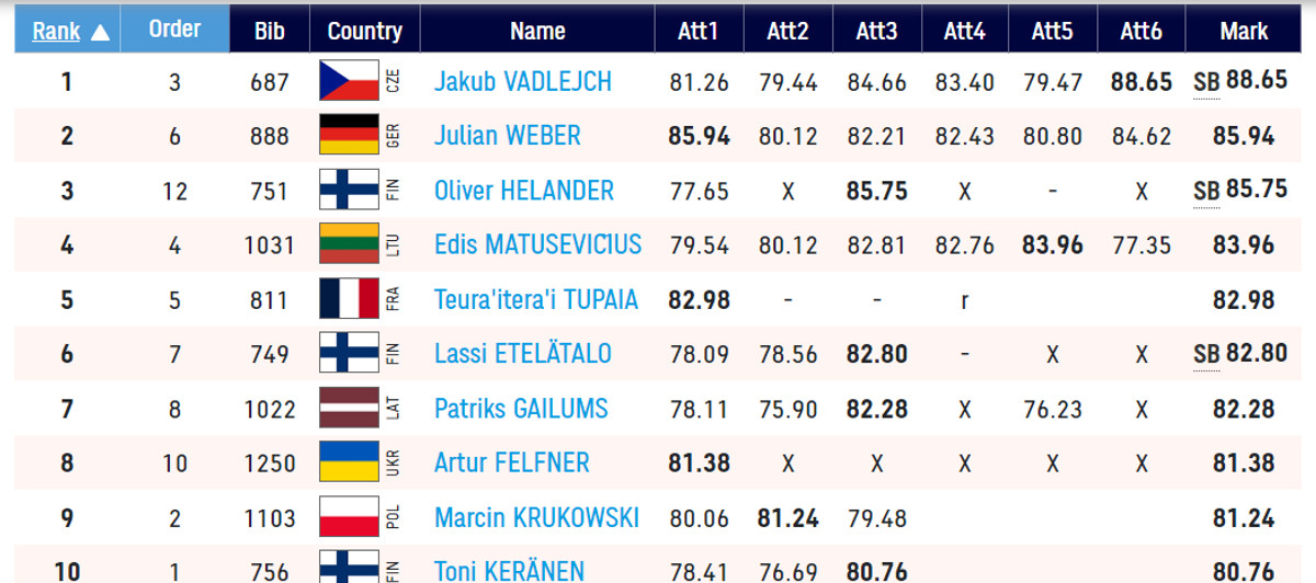 Фельфнер став восьмим у фіналі чемпіонату Європи з метання списа