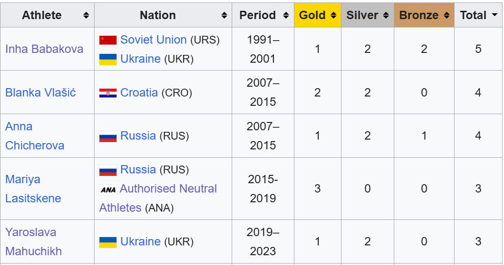* – На Wikipedia.org ще не оновили Ярославі сьогоднішню "бронзу"