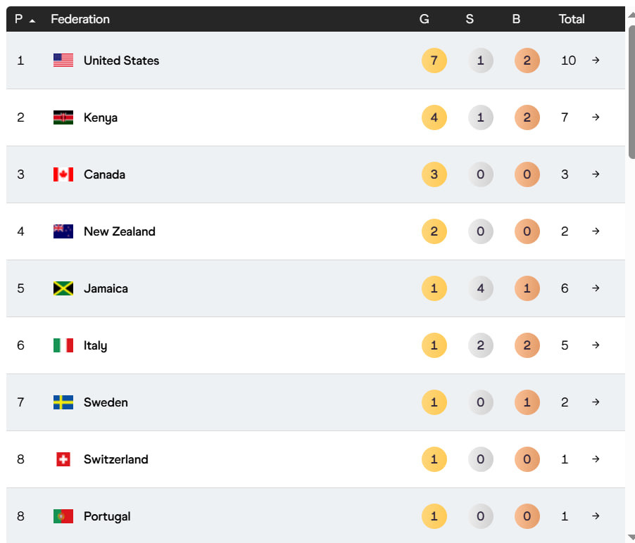 Збірна США збільшила відрив, Італія піднялася на 6 місце: медальний залік ЧС-2025 з легкої атлетики
