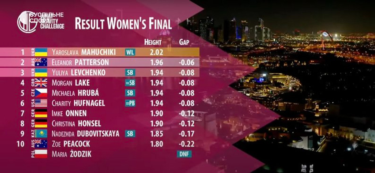 Організатори комерційного турніру What Gravity Challenge в Досі припустились помилки, через яку українська стрибунка у висоту Юлія Левченко втратила своє місце на подіумі.