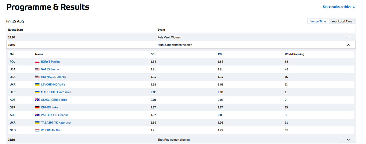В липні поточного року на етапі в Лондоні українка вперше з 2022 року залишилася без медалі етапу Діамантової ліги. Магучіх стала четвертою з результатом 1.93 м. Наступний етап Діамантової ліги відбудеться в суботу, 16 серпня, в польському Хожуві.