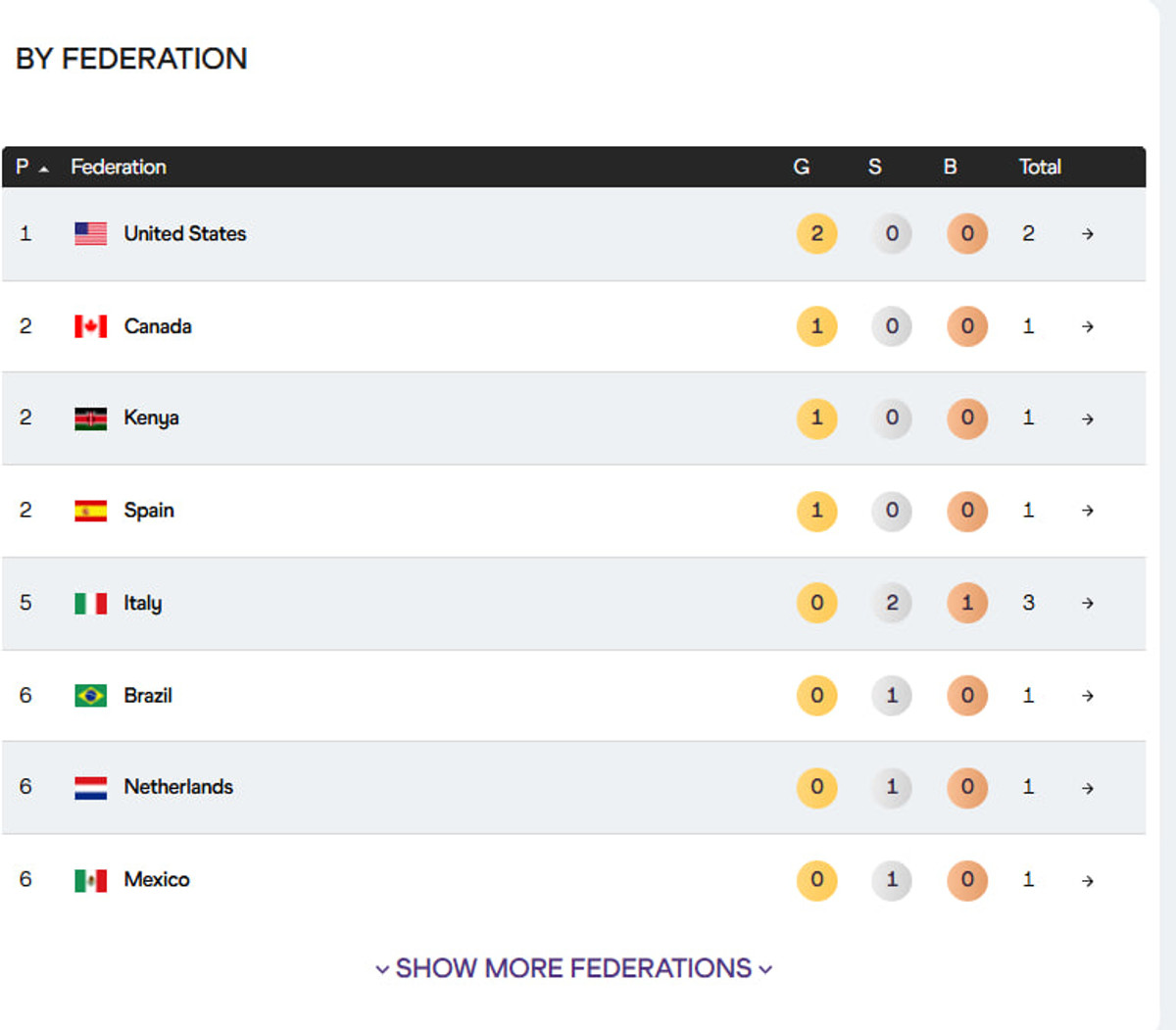 США вийшли в лідери, Чебет дарує нагороду Кенії: медальний залік чемпіонату світу з легкої атлетики після першого дня змагань