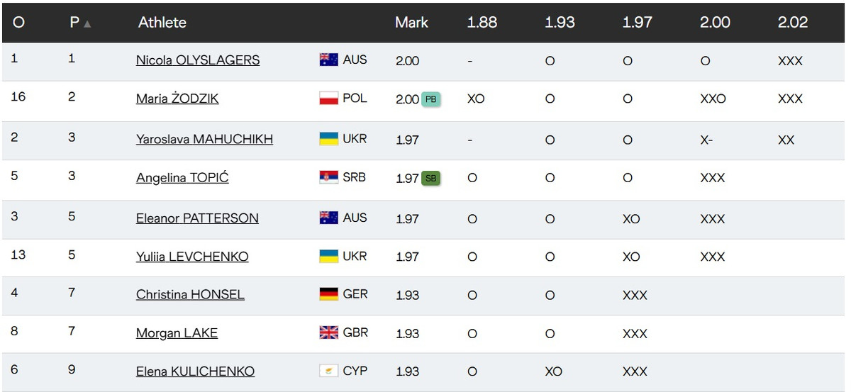 у Токіо. До першої паузи Оліслагерс встигла з першої спроби взяти висоту 2,00