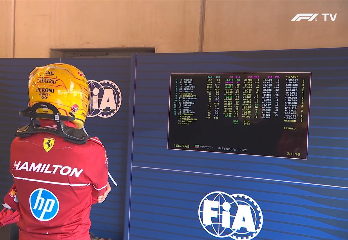 По ходу заїзду Леклер (який програв старт Піастрі через блокування Норріса) та Гамільтон, досить комфортно себе почували. Особливо після того, як сер Льюїс повернув собі четверте місце, відібравши його у Расселла.