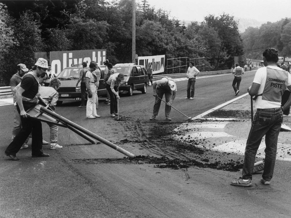 Через 16 років стався ще один унікальний випадок – етап Формули-1 скасували вже після початку гоночного вікенду. Команди прибули до Спа, щоб перевірити нове покриття траси, що мало покращити зчеплення в дощ, однак після п'ятничних практик частина траси була розбита.