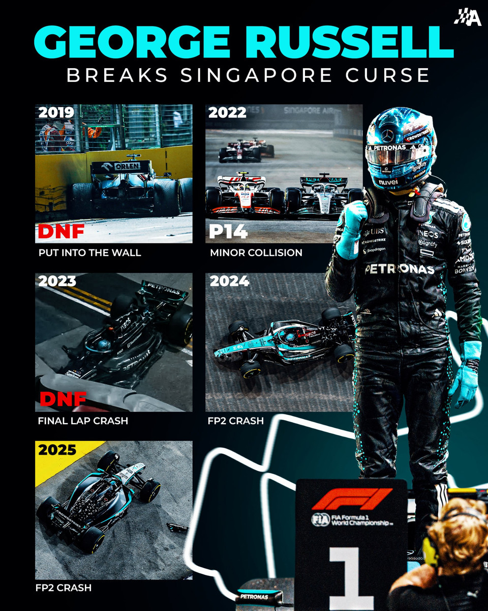 Але в Сінгапурі ані Ферстаппен, ані Макларен не були головною силою – Джордж Расселл провів феноменальний вікенд, який, на жаль, більше запам'ятається не впевненою перемогою гонщика Мерседес, а ще однією драмою імені Ландо Норріса та Оскара Піастрі.