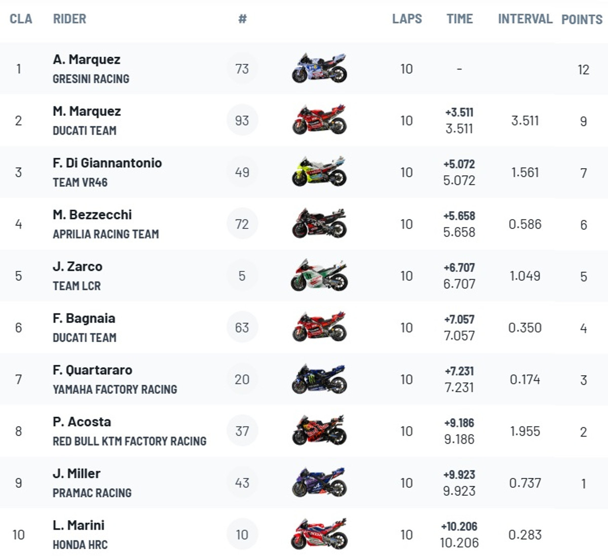Також у залікову зону потрапили Марко Бедзеккі, Жоан Зарко, Франческо Баньяйя, Фабіо Куартараро, Педро Акоста та Джек Міллер.