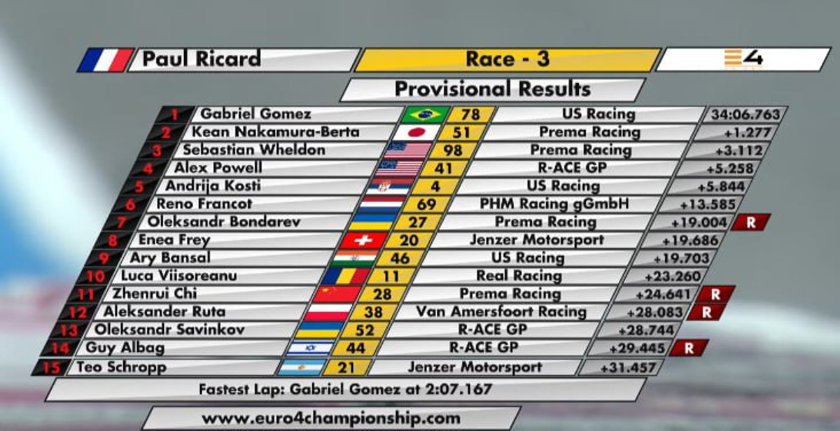 Сьогодні, 20 липня, відбулася третя гонка етапу Е4 (колишня назва Euro 4), який проходить у Франції на автодромі Поль Рікар.