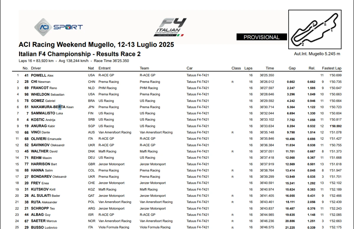 Сьогодні, 12 липня, відбулася друга гонка четвертого етапу сезону італійської Формули-4, який проходить у Муджелло.