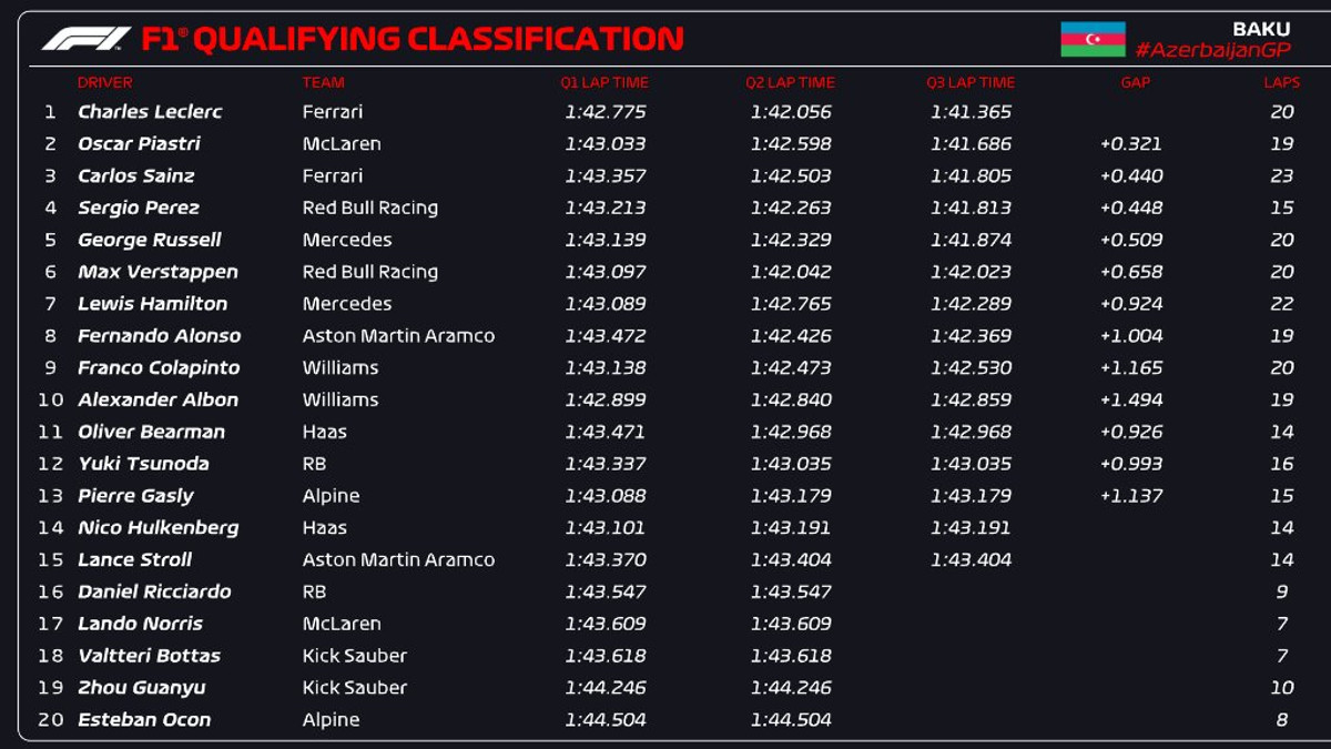 Леклер переміг у кваліфікації Гран-прі Азербайджану-2024