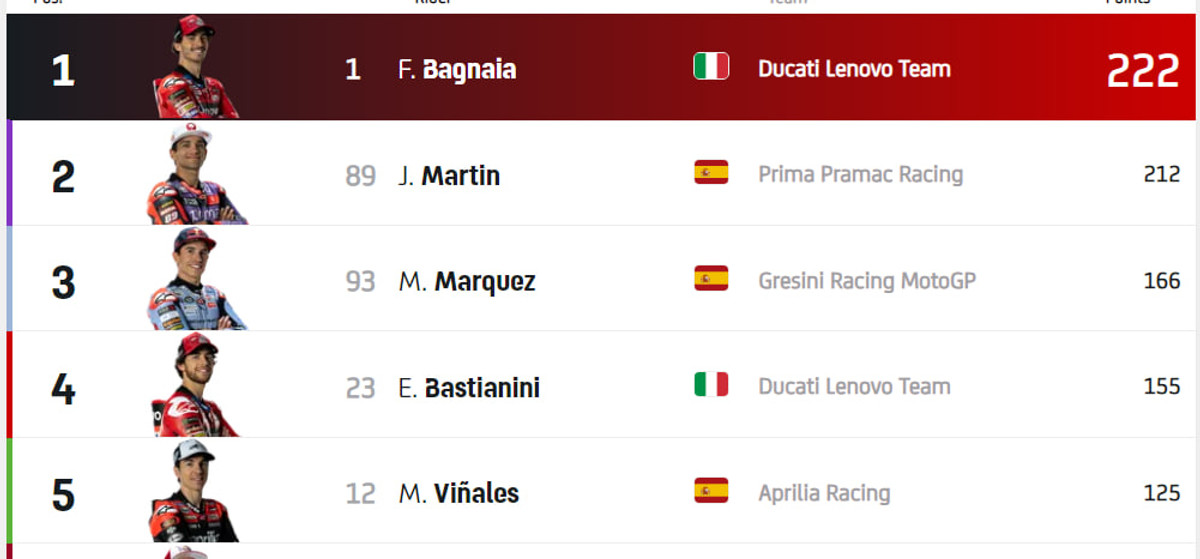 Зазначимо, що це четверта перемога поспіль для італійця. До цього пілот Дукаті тріумфував у Нідерландах.