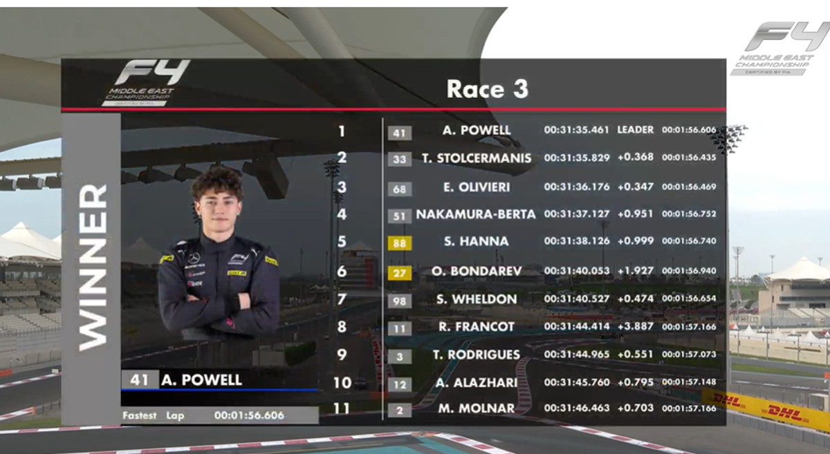 Раніше 15-річний гонщик в ексклюзивному коментарі Чемпіону розповів про дебют у Ф-4 Середнього Сходу та адаптації до перегонів в Абу-Дабі.