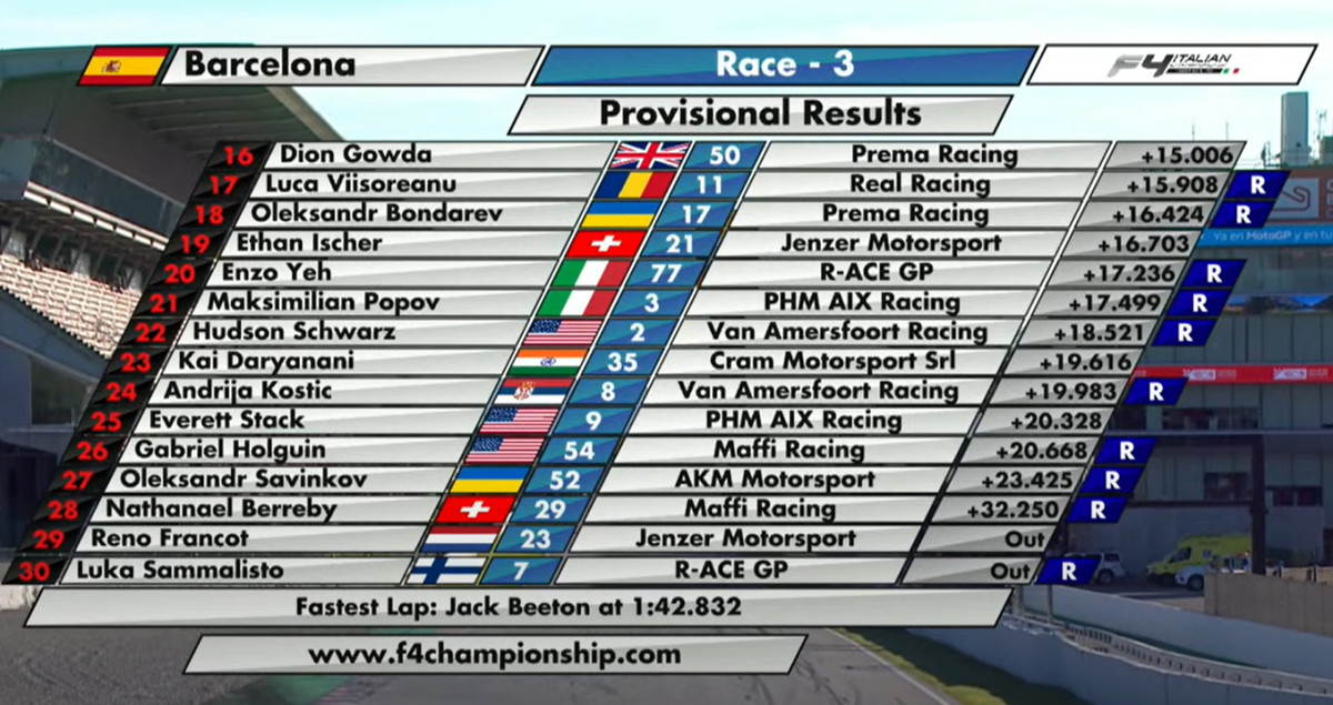 У неділю, 29 вересня, відбулась третя гонка на шостому етапі італійської Формули-4 – перегони на автодромі "Каталунья" в іспанській Барселоні.