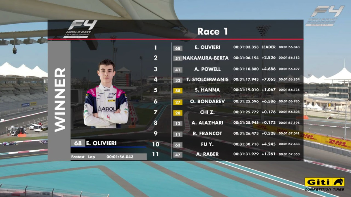 Зазначимо, що за підсумками третього етапу Бондарев піднявся на одну позицію в загальному заліку Формули-4 Середнього Сходу.
