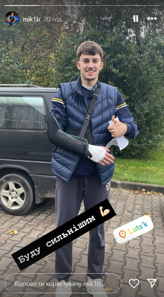 Пізніше Бублик виклав у соцмережах фото зі зламаною рукою, підписавши його: "Буду сильнішим".