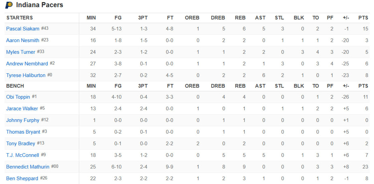 Не пішла гра в лідерів Пейсерз. Тріо Халібертон-Сіакам-Тернер на трьох набрали лише 28 очок, реалізувавши 9/23 з гри.