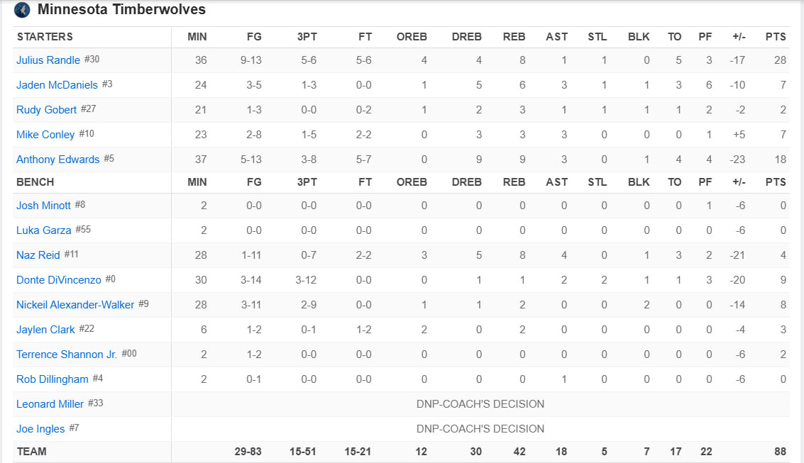 Втім, гравці Тандер у третій та четвертій чверті показали себе найкращим чином. Колектив Кріса Фінча провалювався в захисті, а в нападі перестало працювати майже все.