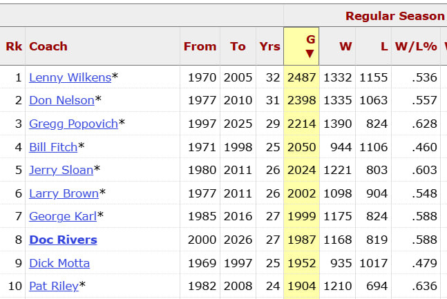 Вілкенс залишається лідером НБА за проведеними матчами на чолі команд. Наразі серед активних фахівців Док Ріверс посідає восьме місце, відстаючи від Вілкінса на 500 поєдинків.