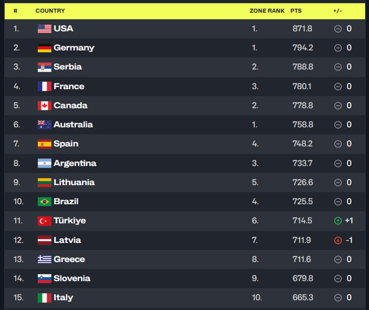 Про це йдеться в оновленому рейтину Міжнародної федерації баскетболу.