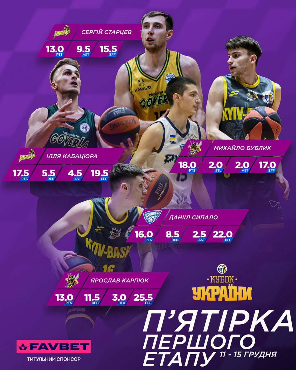 MVP першого етапу турніру став центровий Київ-Баскета Ярослав Карпюк, який у першому матчі оформив дабл-дабл, додавши до 19 очок 13 підбирань.