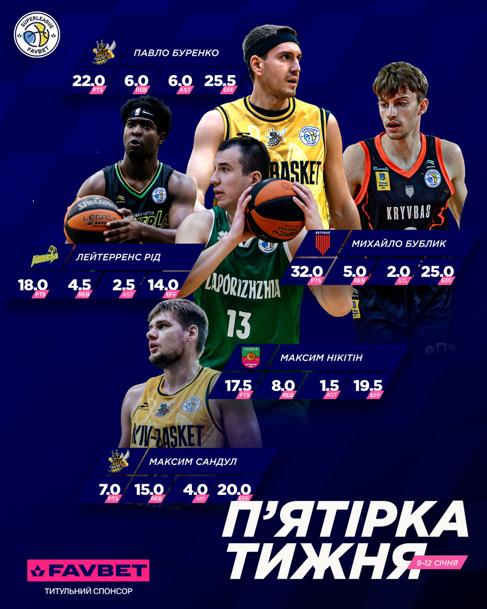 Зокрема, звання MVP здобув розігруючий Київ-Баскета Павло Буренко. Він допоміг киянам виграти обидва матчі в Івано-Франківську: у грі проти Старого Луцька Буренко записав до активу 16 очок, 7 підбирань та 6 передач (РЕ 18), а в матчі проти віце-чемпіонів України БК Рівне став найкращим гравцем із 28 очками, 6 передачами та 5 підбираннями (РЕ 33).