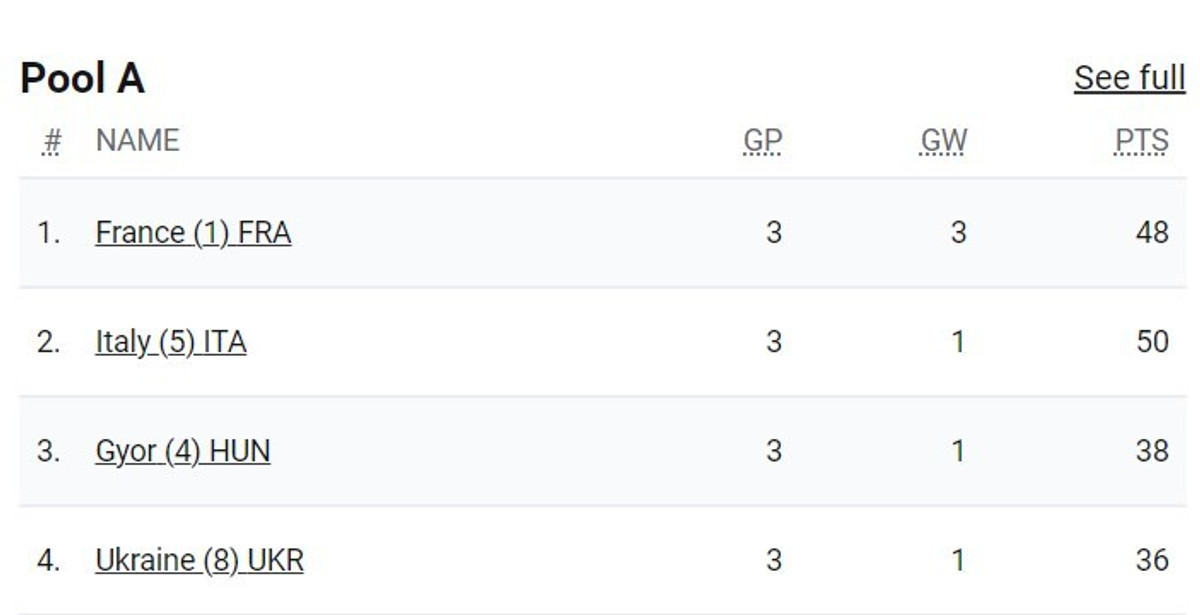 Попри перемогу українки не змогли вийти в плей-оф, ставши ставши останніми в групі. Збірна України набрала найменше очок, тому пропустила попереду себе Італію та Дьор.