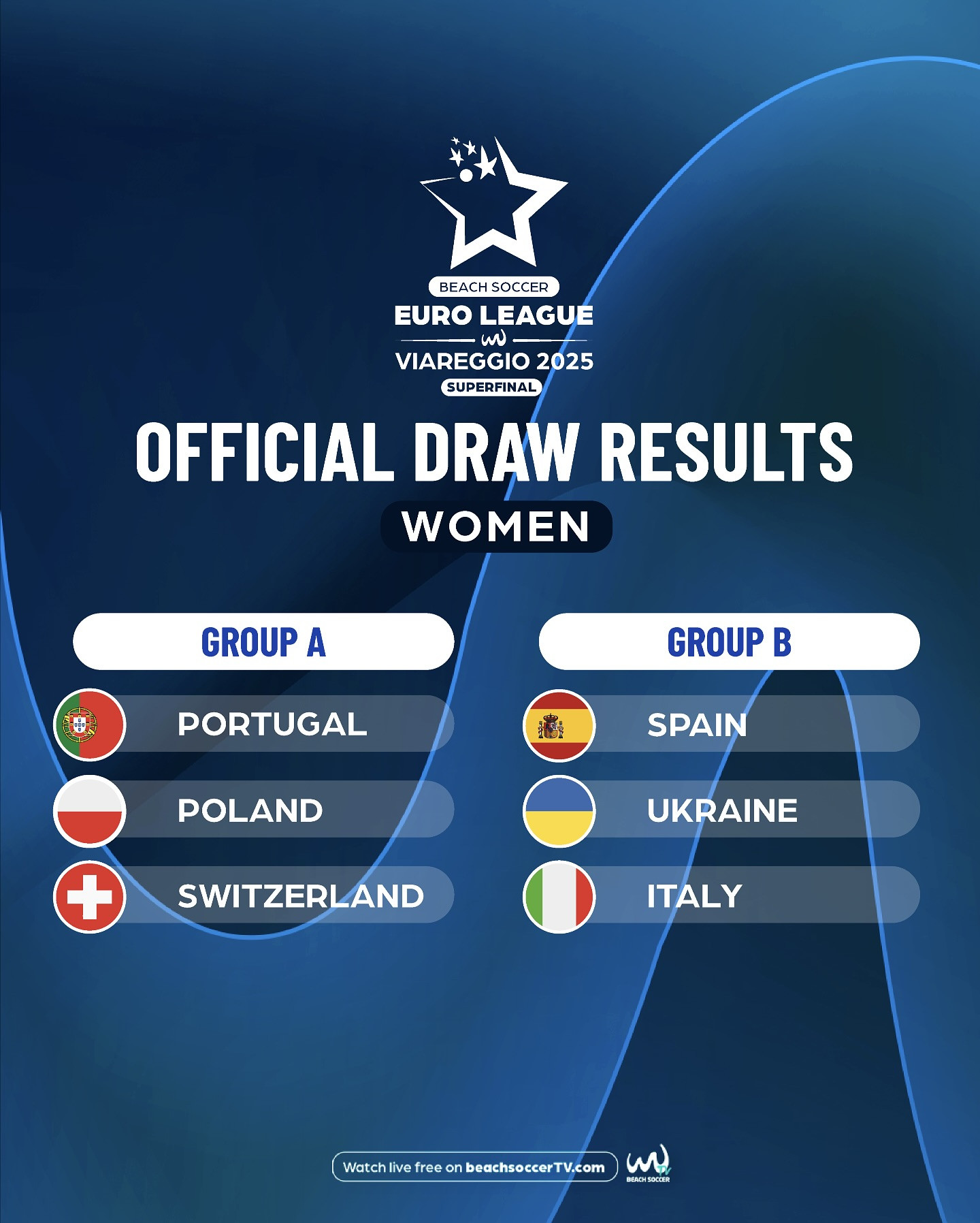 Жіноча збірна України в групі "B" зіграє з Іспанією та Італією. Про це повідомляє Всесвітня асоціація пляжного футболу.