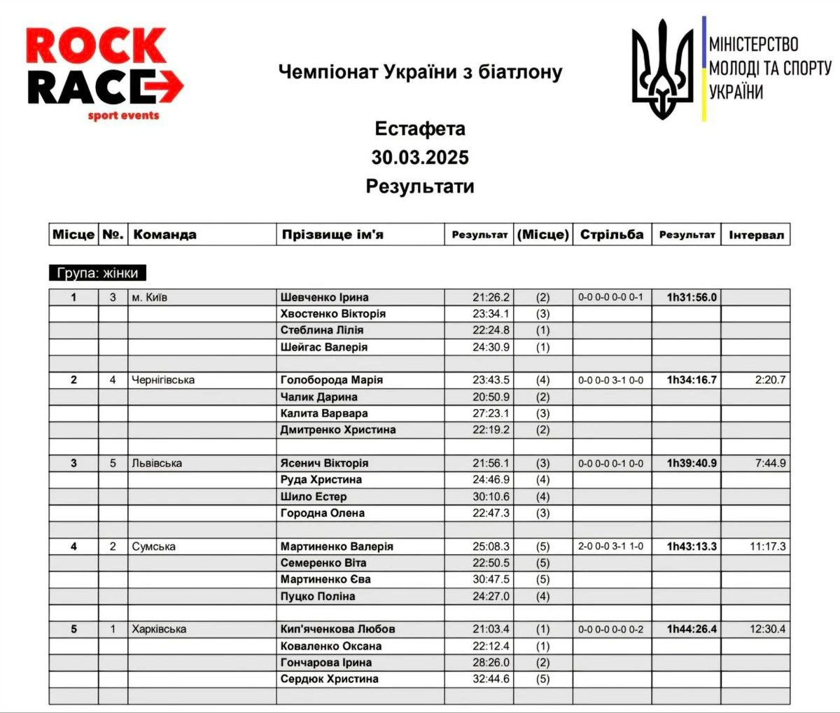 Результат жіночої естафети: