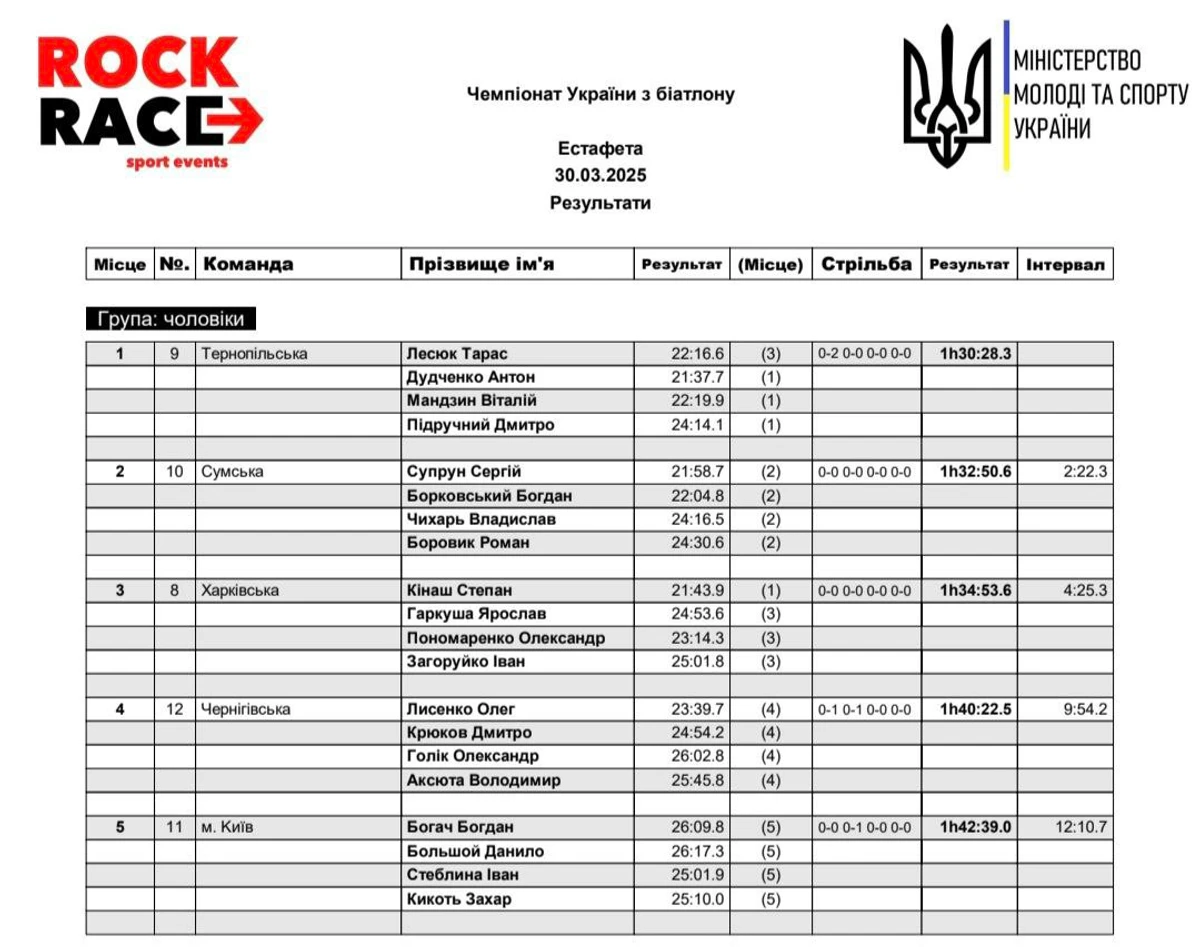 Чемпіонат України-2025. Результат чоловічої естафети