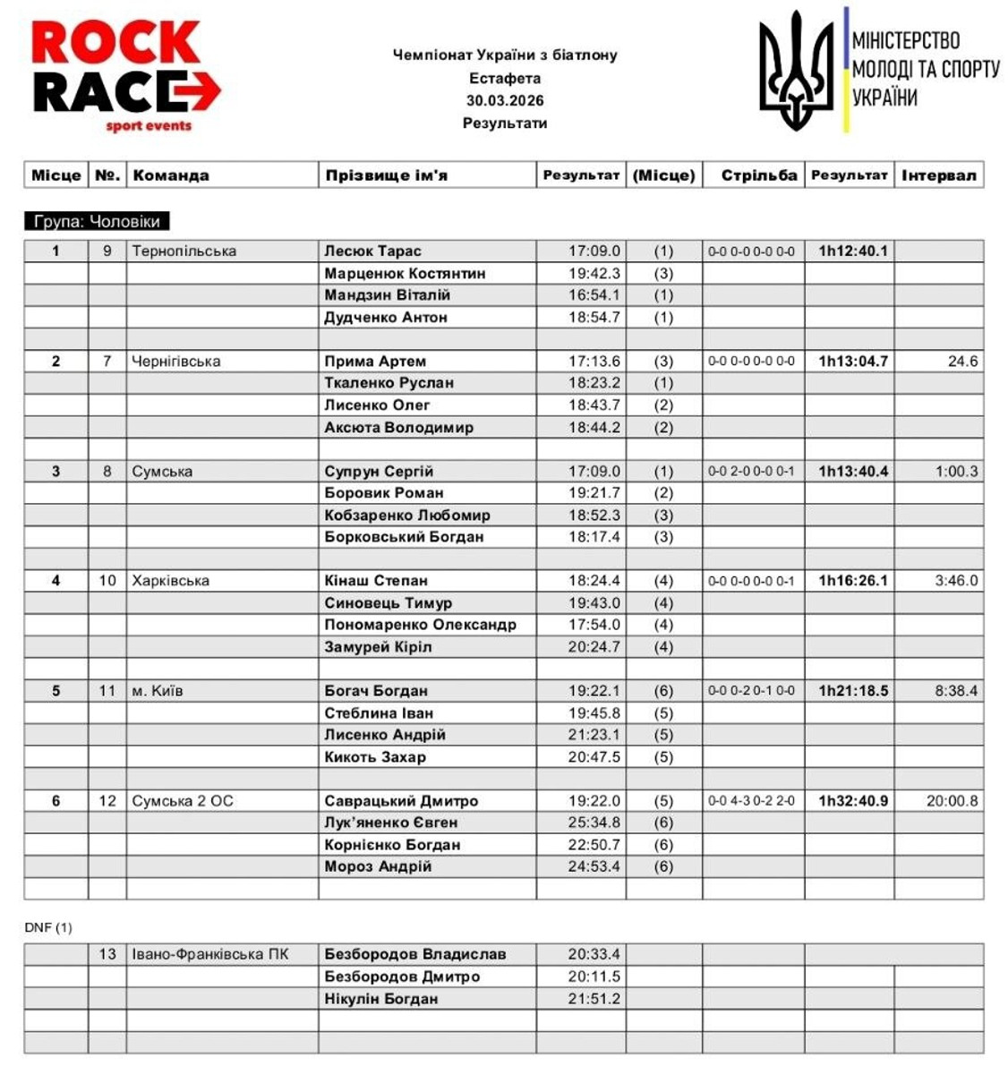 Також призерами обох гонок стали команди Чернігівської та Сумської областей. Натомість біатлоністи з Харківщини і у жіночій, і в чоловічій естафетах фінішували четвертими.