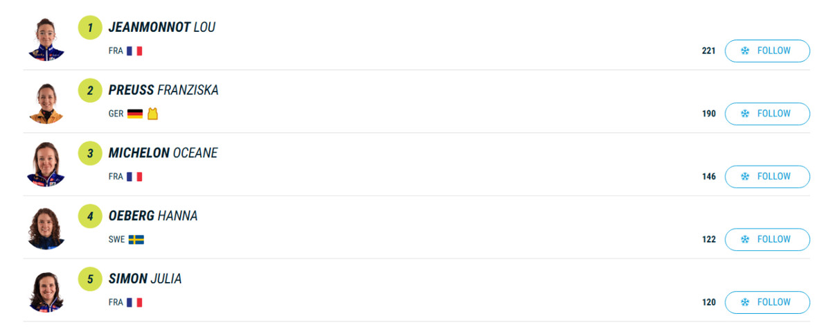 У Топ-5 заліку опинилися одразу три представниці Франції, що зайвий раз демонструє, наскільки сильною зараз є французька команда.