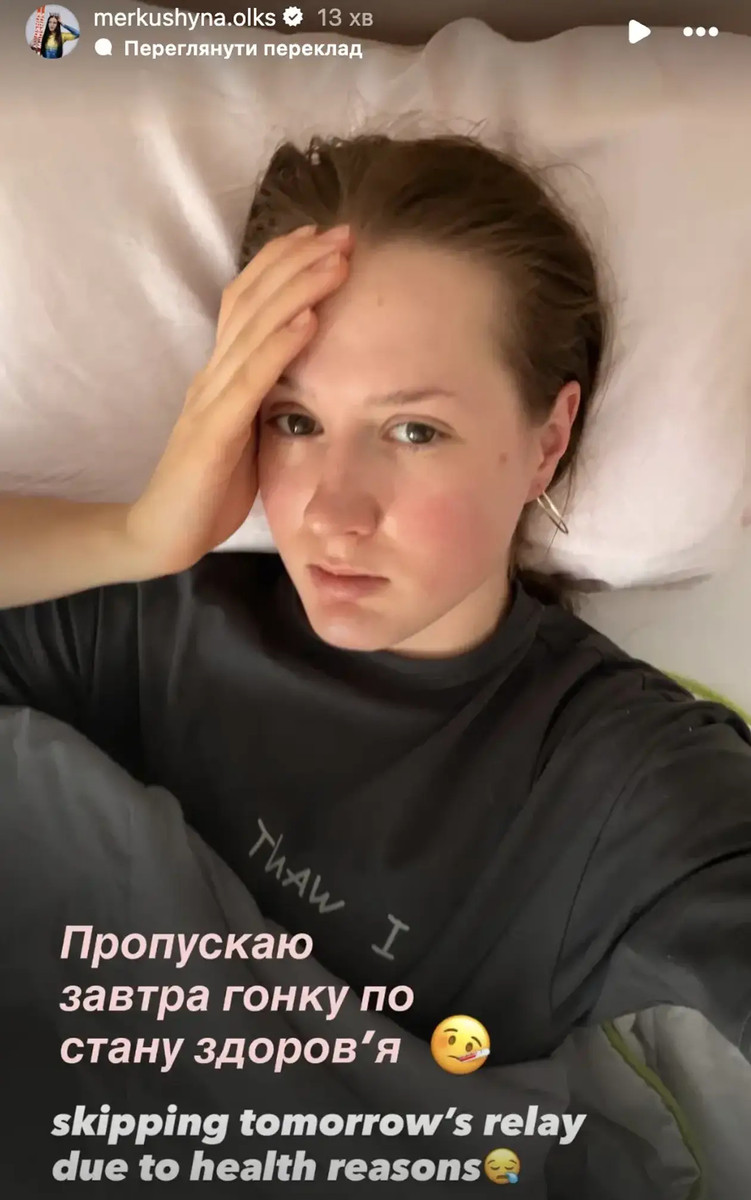 "Пропускаю завтра гонку по стану здоров'я", – зазначила Меркушина.