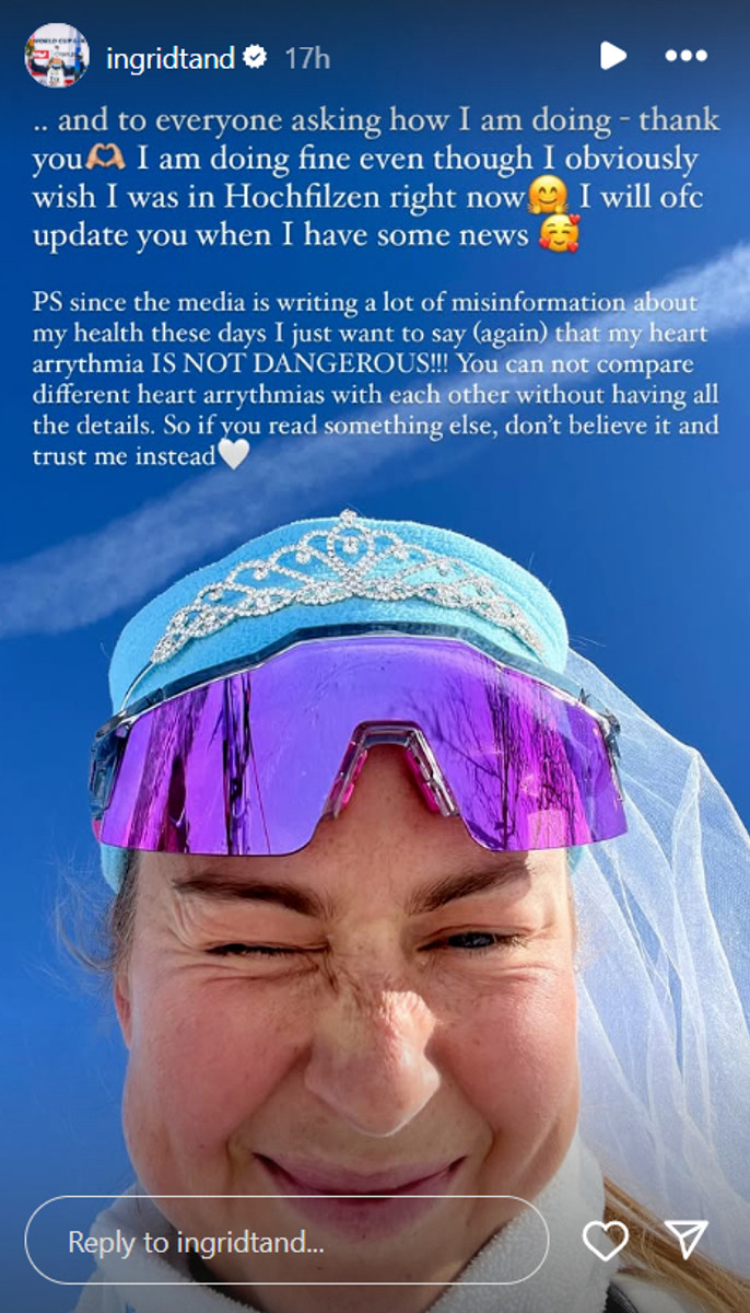 Оскільки ЗМІ пишуть багато неправдивої інформації щодо мого здоров’я останніми днями, я хочу ще раз сказати: моя серцева аритмія не є небезпечною. Не можна порівнювати різні види серцевої аритмії, не знаючи усіх деталей. Якщо ви прочитали щось інше – не вірте. Краще довіртеся мені", – написала норвежка.