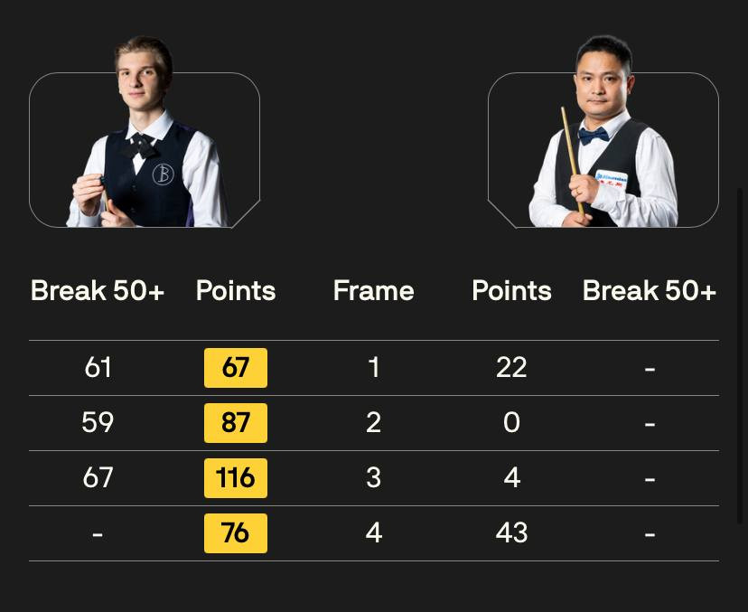У кожному фреймі 19-річний українець діяв упевнено. Загалом за гру він набрав 346 очок, тоді як опонент всього 69. На рахунку Бойка три півсотенні серії.
