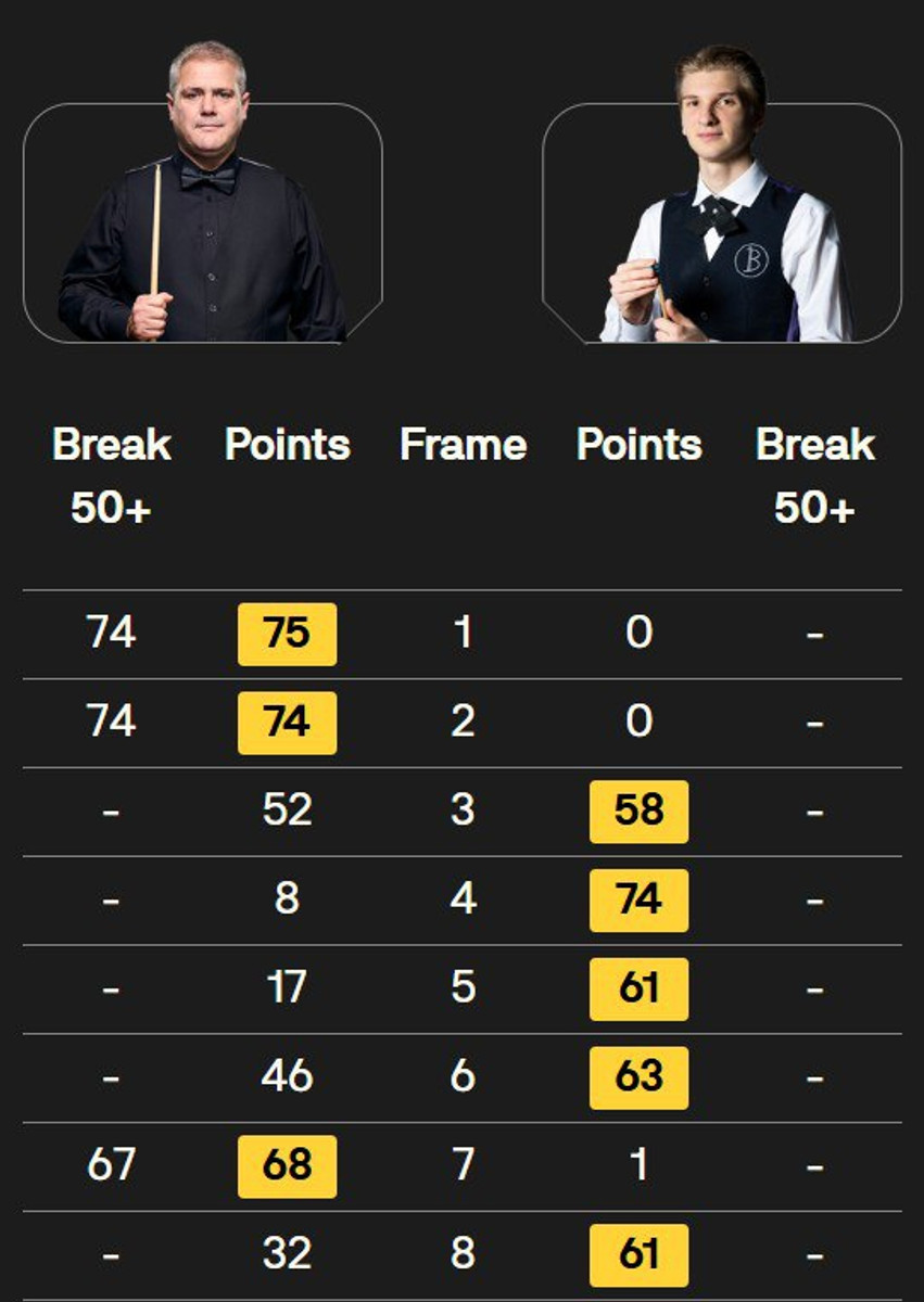 49-річний англієць, який ще в червні 2023-го посідав 12-те місце світового рейтингу, чудово розпочав матч, двічі поспіль робивши серії на 74 очки в стартових фреймах.