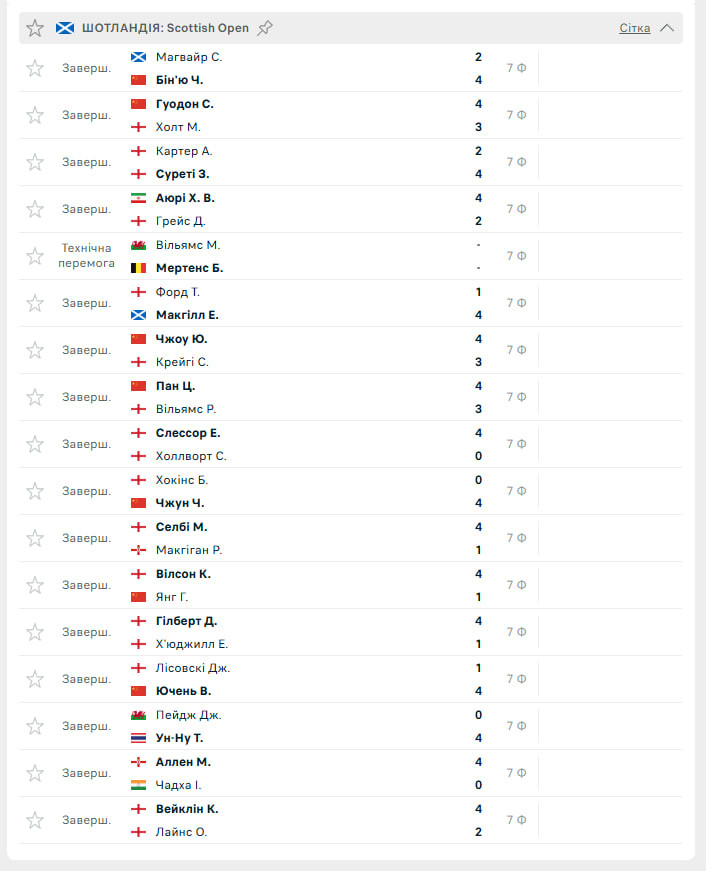 Селбі продовжує перемагати, Лісовскі не впорався з китайцем: результати Scottish Open 2025