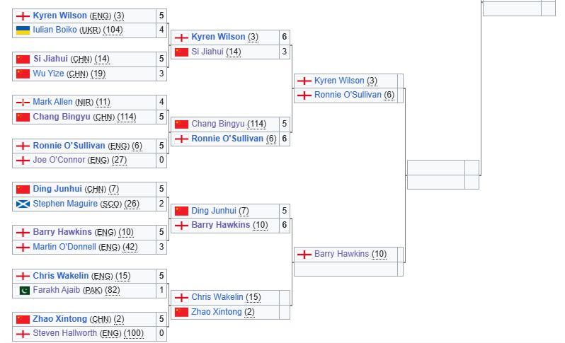 У наступному етапі ці англійські титані зійдуться між собою. Два тижні тому Кайрен обіграв Ронні на турнірі Shanghai Masters.
