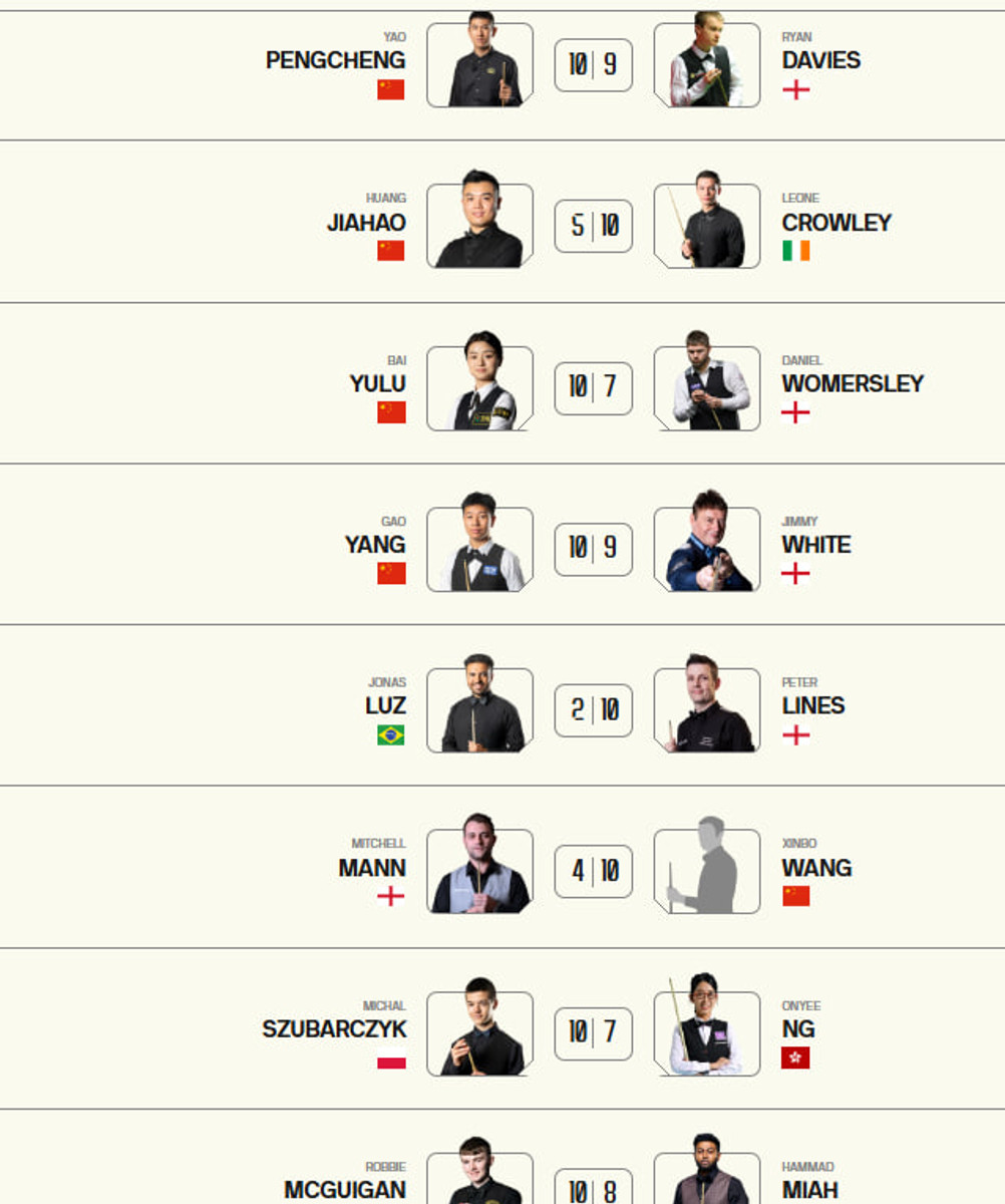 Кваліфікація на ЧС зі снукеру. Матчі, що завершилися: