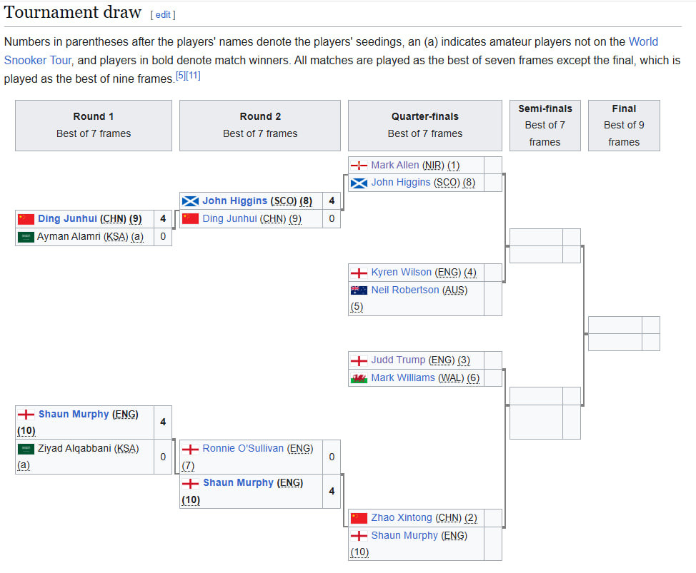 Сітка турніру Riyadh Season Snooker Championship 2025