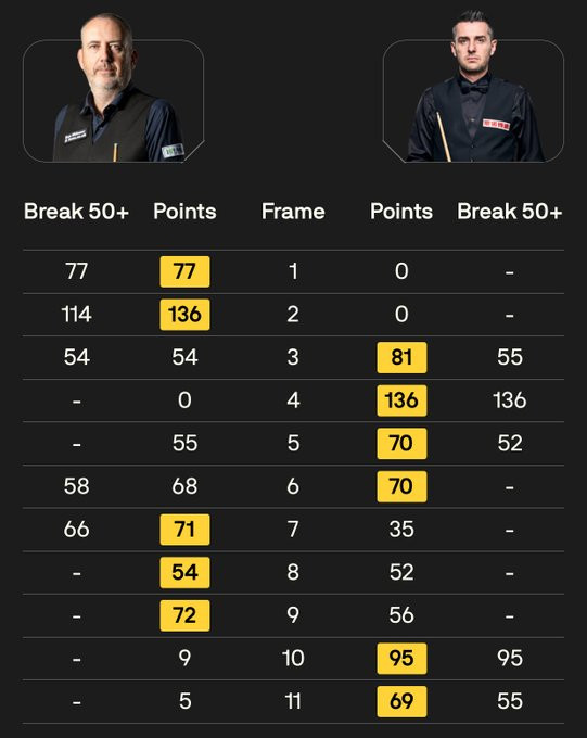 "Ближче до кінця було божевілля. Я відчував, що зіграв дуже добре, щоб вийти вперед 4:2. Марк зробив те, що він робить. Він напружився, показав свій клас, повернувся, а наступної хвилини я програвав 5:4. У мене почала голова паморочиться.