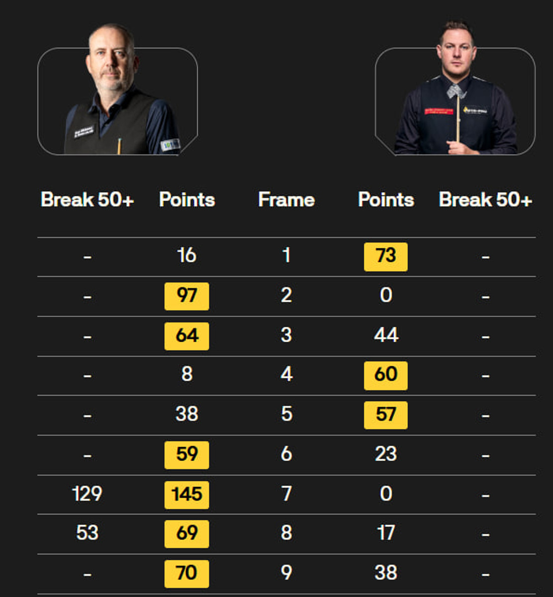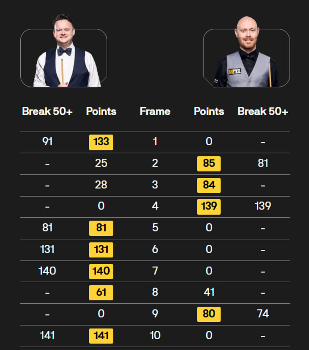 Потім триразовий чемпіон світу зумів "наладити приціл". Зокрема, оформив 129-очковий брейк у фреймі №7.