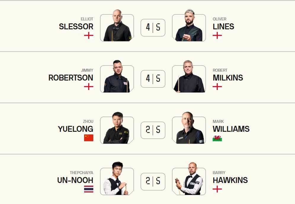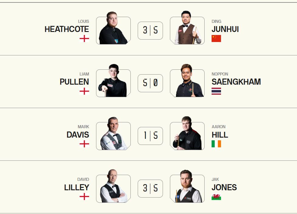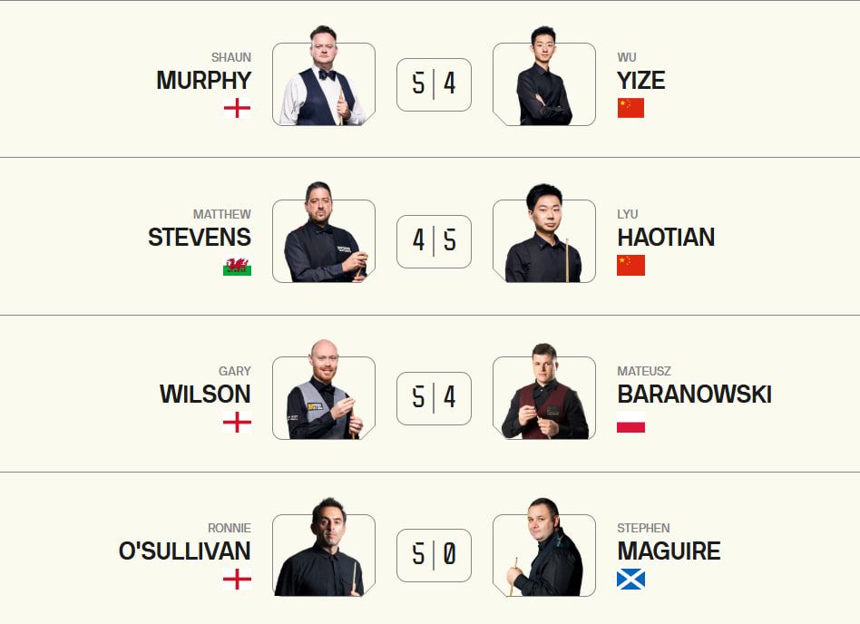 Пройшли далі Кайрен Вілсон та Шон Мерфі, які зійдуться між собою в 1/8 фіналу.