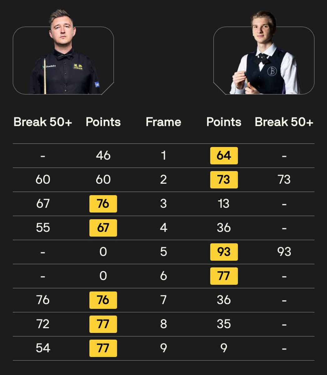 Кайрен зрозумів, що можуть бути проблеми і забрав фрейм №3. У четвертому Юліан добре розпочав – 36:0. Кайрен відповів 55 очками. Далі почалася серія відіграшів, з якої успішніше вийшов англієць.