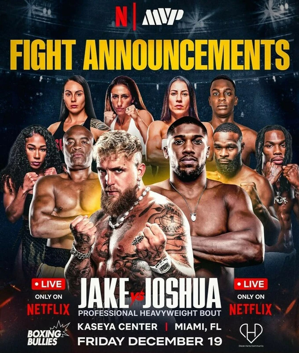 - Ентоні Джошуа (28-4, 25 KO) – Джейк Пол (12-1, 7 KO)