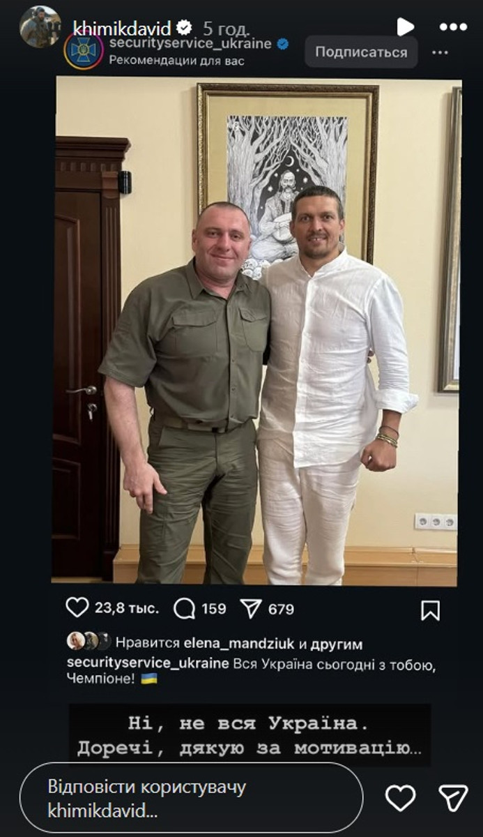 Потім він прокоментував пост СБУ перед боєм Усика, в якому служба побажала боксеру перемоги над Дюбуа: